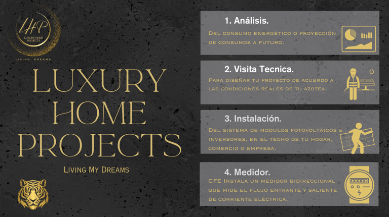 Nuestros paneles solares absorben la luz del sol y la convierten en electricidad. Luego, nuestros inversores transforman la energía directa en alterna, el exceso de energía solar, se envia a CFE quien funge como nuestro banco para su uso cuando el sol no brilla, como durante la noche o en días nublados. Esto garantiza un suministro continuo de energía en tu hogar, reduce tus facturas de electricidad y disminuye tu huella de carbono.